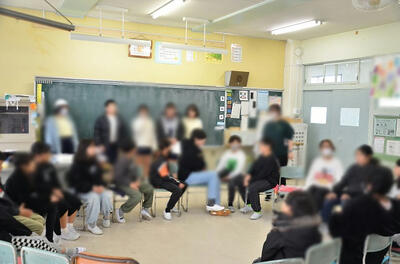 なかよし班ごとに集まり、引き継ぎ式を行いました。