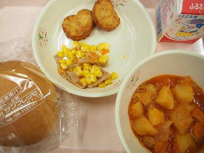10月29日(水)子供パン じゃがいものトマト煮 チキンナゲット コーンソテー 牛乳
