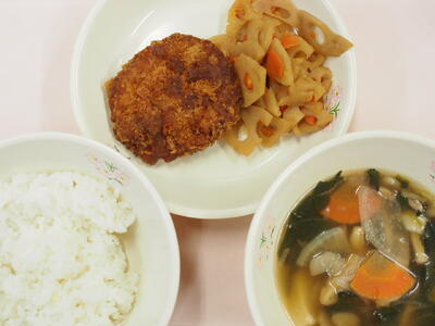 12月8日(月)ごはん せんべい汁 みそカツ きんぴられんこん 牛乳