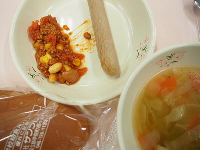 1月15日(木)ロールコッペ 野菜スープ フランクフルトソーセージ チリコンカン 牛乳