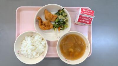 令和8年4月17日(金)ごはん、けんちん汁、鶏のから揚げ、菜の花のごま和え