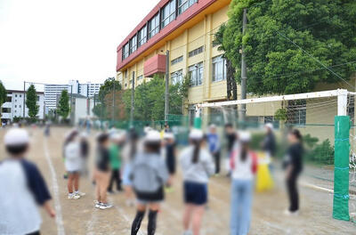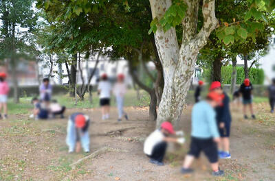 運動会に向けて、校庭の石拾いや草むしりを行いました。
