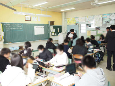 災害から暮らしを守るためにどんな対策があるか調べ、調べたことを伝え合っています。
