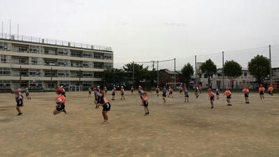 4年生の体育では、リレーを行っています。
